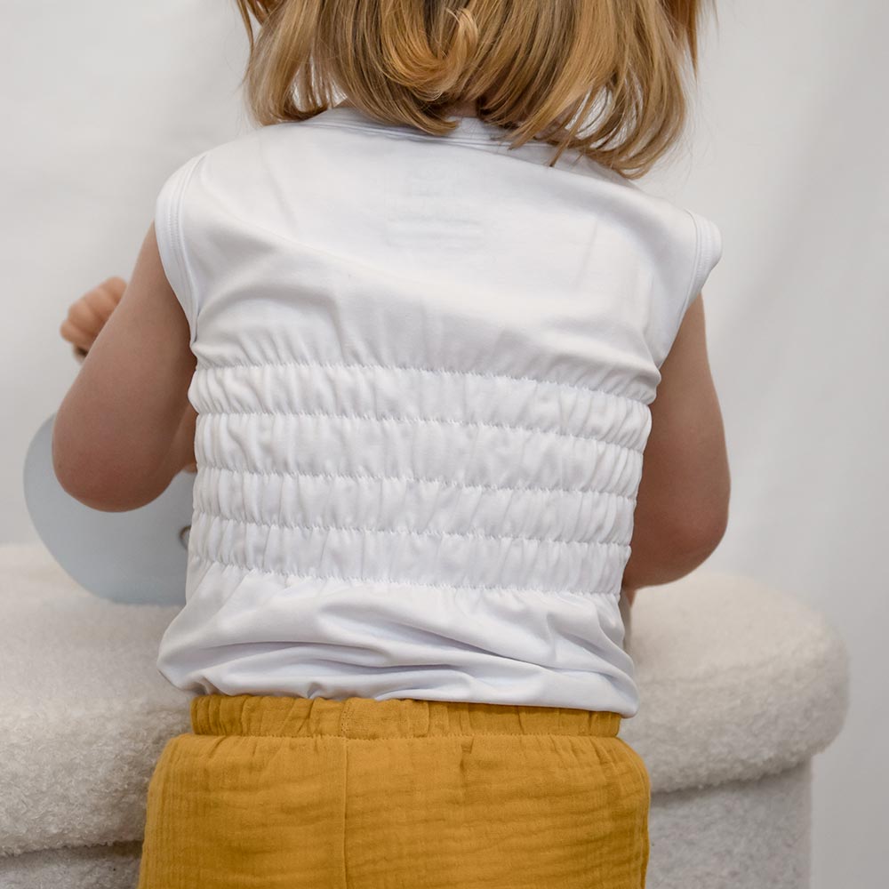 Schütze dein Kind vor Kratzern und kalten Füssen, mit den innovativen Umstulpbündchen an Ärmel und Beinen.